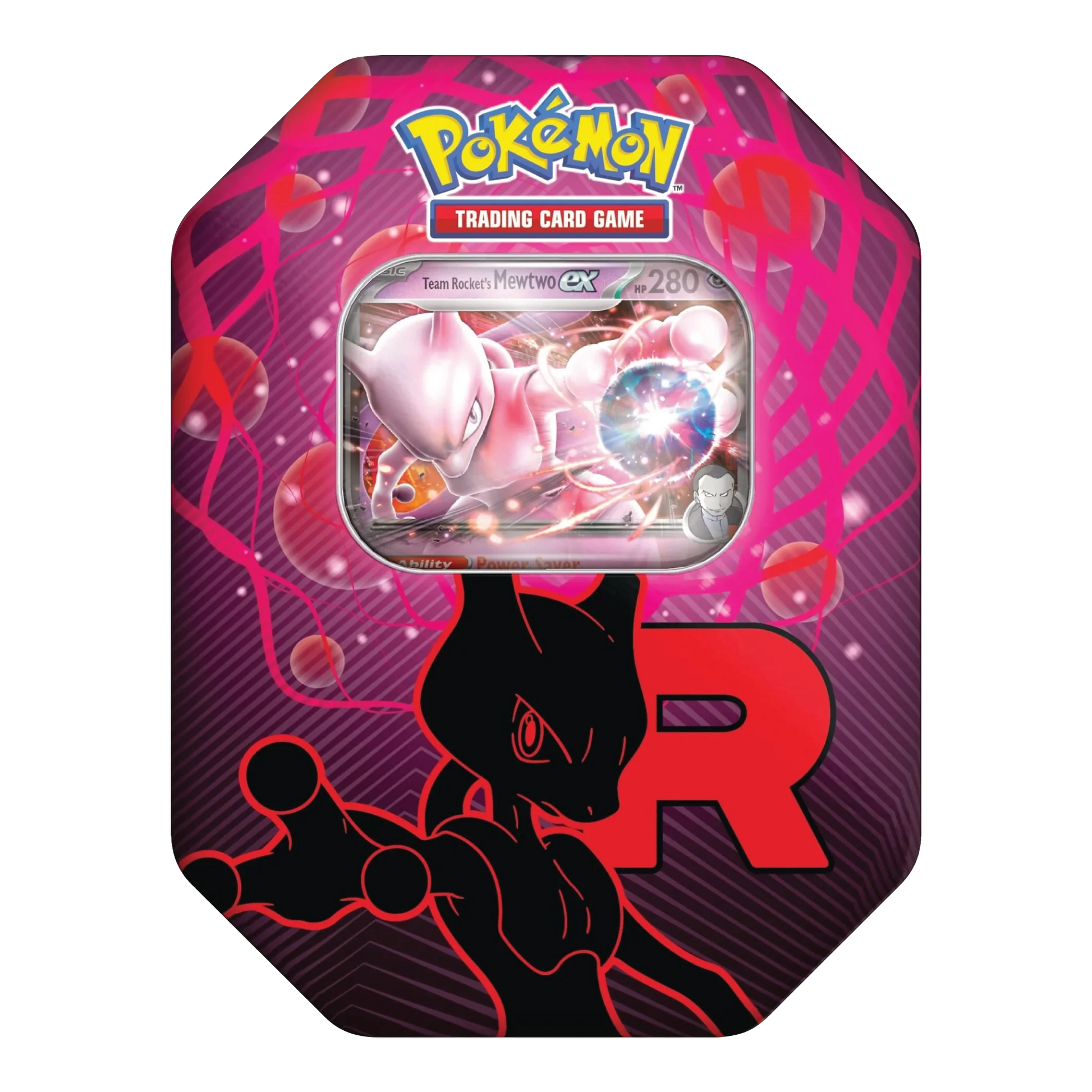 Streef naar totale dominantie met de complete set van drie Pokémon TCG: Team Rocket Tins. Verzamel Mewtwo ex, Nidoking ex en Persian ex en ontdek de kracht van dit beruchte trio. Elk blik bevat een unieke promo, meerdere booster packs en natuurlijk de onmiskenbare stijl van Team Rocket.